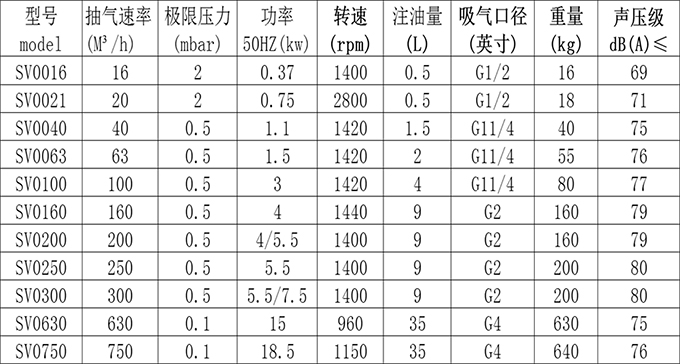 SV單級(jí)真空泵參數(shù)表
